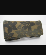 財布の特徴:迷彩風の花柄(カーキ色)、ジャック・スペード、折式の長財布、免許証あり、現金は小銭で1000円弱、その他キャッシュカード、各種ポイントカードあり