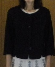 紺色ノーカラージャケット、女性用Mサイズ七分袖、丈短め、夏用。