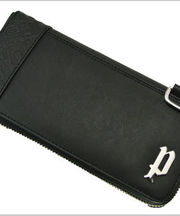 財布の特徴は黒色の長財布で大きくPのアルファベットが付いています。