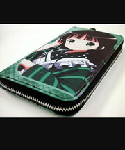 緑色の長財布。アニメのキャラ入り