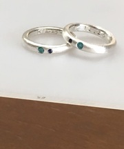 外径に二つサファイアとターコイズの色味の石が二つ入っていて、内径にはK12.25Yと手彫りで刻まれています。
