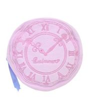ピンクの丸い時計の刺繍の入ったバック