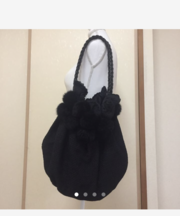 黒のファー付き布製バッグ