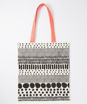フライングタイガーのショッピングバッグで、白地に黒の変形ドットが描かれたもので、持ち手は黒の布製です