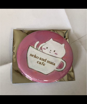 ピンク色のね子とま太というアニメのね子がついている缶バッジ