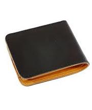 紺色で中が茶色で二つ折りの財布