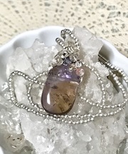 ペンダントトップがアメトリンで、上部にワイヤーデザインされています。チェーンはシルバー色のビーズで接続部分はマグネット式になっています。