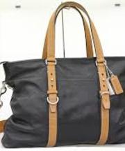 コーチのトートバッグで、本体は黒、持ち手が茶色です。