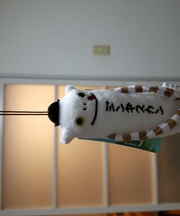 白くて細長いモケケと言うぬいぐるみが付いています