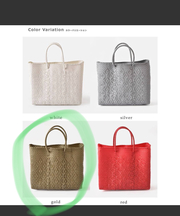 金色に近い黄土色の籠バック、中に財布と化粧ポーチ、弁当箱が入っていた