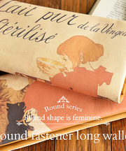 長財布(猫と女の子が描かれた皮)ベージュ系