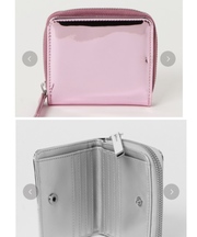 財布は無地のピンクです。ものを近づけると、鏡みたいな感じで写ります。