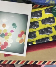 中には路面バスの柄のポーチと、手紙のカードが入っています。