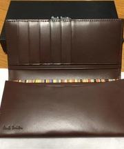 茶色い革製長財布ポールスミス