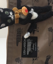 猫(黒に白い柄)羊毛ブローチ手の平サイズ