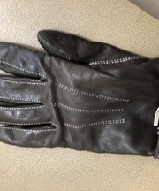 こげ茶の皮の手袋 右手。銀色の金具の飾りつき