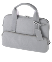 グレーのPCバックに入った黒のFUJITSU モバイルパソコン