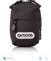 OUTDOORの黒デジカメポーチ カラビナ付き