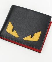 二つ折り財布、FENDI、外側黒色、内側赤色、黄色い目の模様