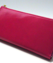 ピンク色の革製長財布。