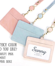 カードホルダー:首から下げるタイプで合皮製でパステルピンク