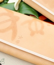 茶色、革長財布、表面に亀(ホヌ)の柄