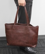 茶色の皮カバン、財布、iPhone8、名刺、印鑑、鍵、etc