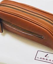 オレンジ色の革製(土屋鞄) のペンケース、中に鍵、腕時計