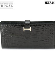 HERMES財布ベアンクロコ 黒長財布