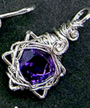 アメジストを銀のワイヤーで巻いたペンダント(茶色の紐付き)を探しています。