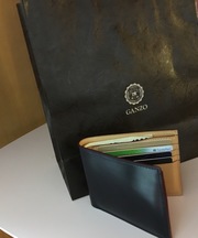 GANZO 二つ折り財布 表面 黒 内面 茶(クリーム色)
