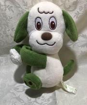 NHK いないいないばぁの白と緑の犬のぬいぐるみ、腕等に抱きつく形のぬいぐるみを落としました。