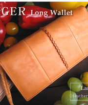 オレンジの革製長財布