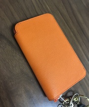茶色セカンドバック 中にオレンジの財布