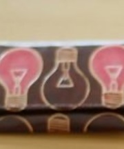 外観は焦げ茶色に電球の柄が入っており、緑、ピンク、黄色の差し色が入っています。