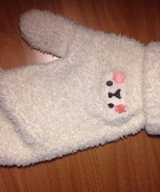 白色のミトン手袋(動物の顔の刺繍入り)
