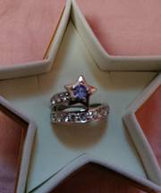 指環星のモチーフ青い石一つ透明な石沢山