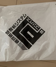 白い袋に四角いデザインがありその中にコンパスと書かれている