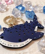 魚(ジンベエザメ)の形をした青色のキーホルダー