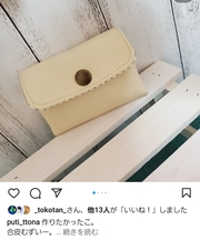 合皮でアイボリー(白っぽい)のハンドメイドの財布です。