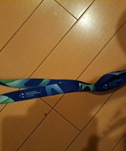 青いネックストラップについた鍵3本、とらのしっぽつき