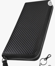 黒でカーボン調の革製の長財布