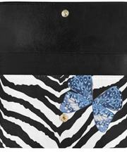 白黒ゼブラ柄に青い蝶の長財布