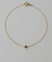 華奢な金色チェーンのブレスレットで、ガーネットという赤い石がひとつついています。