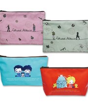 筆記体とイラストが書かれていて、比較的薄いポーチですが内容物が多くパンパンになっていると思います。