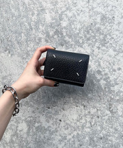 黒い革製の三つ折り財布 メゾンマルジェラ