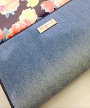 デニム生地の長財布、中に学生証、保険証、親の名刺がはいっています。