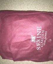 エンジのトートバックに、茶色の長財布とお弁当