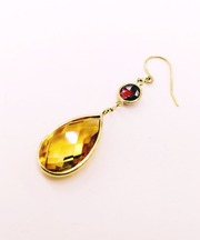 大きなしずく型にカットされたの黄色の石と、丸くカットされた赤い石がついた金のピアスです。全体的に結構大きめです。