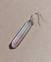 鉛筆のようなカットの石がついていて、ゴールドのフック型の金具がついているピアスです。